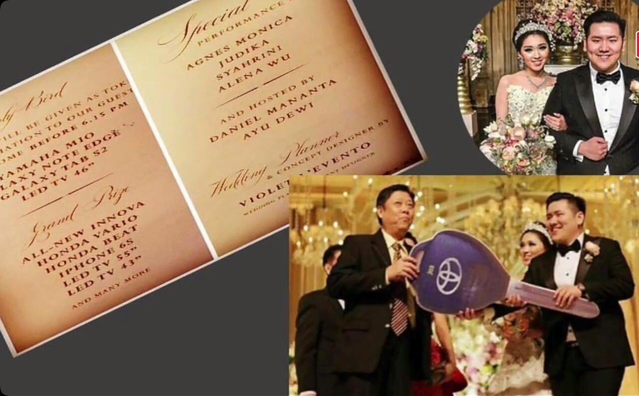 Pasalnya, pasangan ini memberikan doorprize kepada tamu undangan yang beruntung berupa apartemen mewah. Selain itu, juga disediakan souvenir menarik seperti Iphone, tablet serta barang elektronik mewah lainnya.